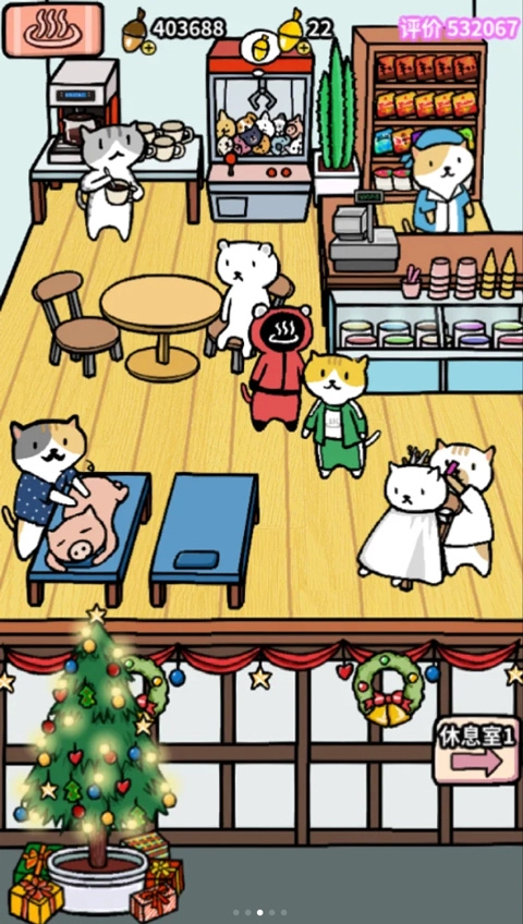 提升温泉的评价值,派遣主人猫前往村子邀请动物。若主人猫邀请的动物此前曾到访过温泉,该动物便会升级;当该动物获得沐浴用品的次数超过10次时,将得到常客印章。对于拥有常客印章的动物,每累计获得10次沐浴用品,其常客等级就会提升。