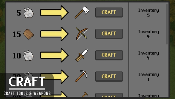 玩家还能收集材料打造斧头、弓箭、匕首之类的武器,用来开展狩猎活动与进行防守。