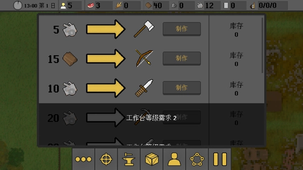 同时,《人类最后的防线》这款游戏支持武器制作系统,玩家能够收集各类材料,打造出斧头、弓箭、匕首等不同类型的武器,用于狩猎获取资源和抵御敌人侵袭;此外,玩家还可以通过增添不同职业的人口,来提升营地的整体水平。