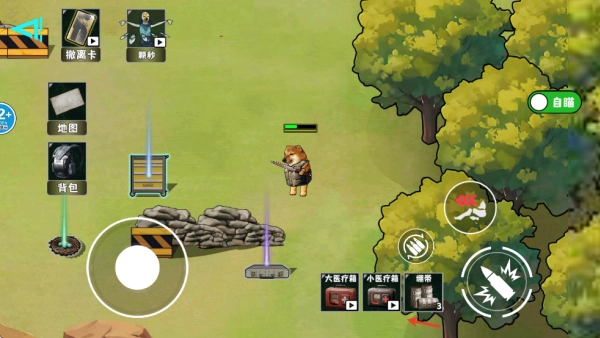 当你没血的时候点击下方医疗用品可以打药回血。