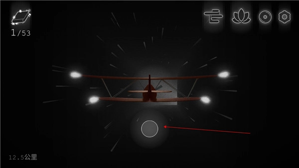 进入游戏后,点击画面里的光球就能开始游玩。左上角的书籍图标显示你收集故事的进度,左下角则代表当前关卡的距离数值。
