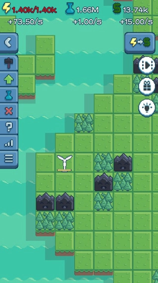 首先搭建风力发电机,你能够通过点击这个图标来售卖它所产生的电力。