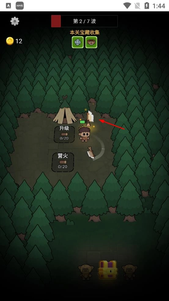 请留意当前关卡的宝藏收集进度,积极去收集更多宝藏,与此同时也要推动升级、营火这类任务的完成情况,从而能够顺利通过这一关卡。