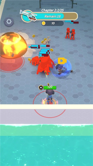 创新对抗射击模式:突破传统射击玩法,以指挥队伍作战为核心,打造丰富关卡场景,可率领蓝队小兵向红队及首领发起冲锋,尽享疯狂扫射的畅快体验。