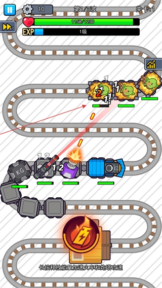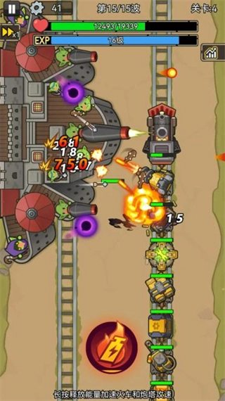 战斗时长按能量球图标,能触发火车冲刺效果,对轨道上的敌人造成大范围伤害,这是应对密集敌人的关键手段。