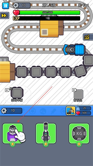 长按底部的炮台,把它拖到火车的空白格子上,这样就能完成防御布局了。不同的炮台有着不一样的功能,需要依据战术需求来进行搭配。