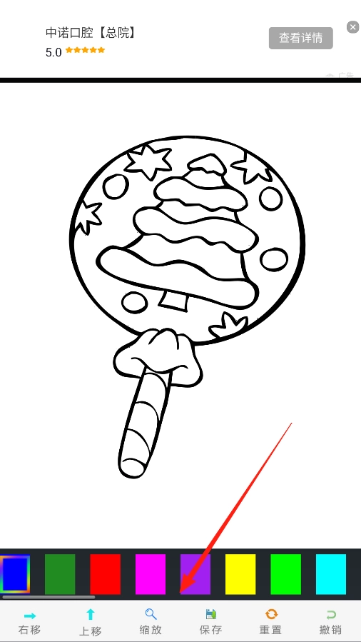 给圣诞棒棒糖上色时,可以使用底部的色块;要是想调整细节部位,缩放功能能帮上忙;万一画错了,点一下撤销按钮就行;保存作品之前,还能用重置功能把整个作品重新来一遍;查看详情的话,就能看到其他用户的配色灵感啦。