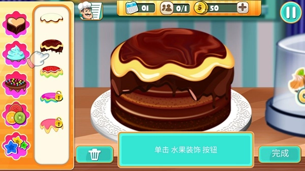 2D平面能为玩家带来直观的游戏体验。游戏画面的处理十分细腻,玩家只需用手指拖拽,就能全方位欣赏蛋糕的精美装饰,让蛋糕的制作过程显得格外逼真生动。作为蛋糕店老板,游戏在蛋糕设计上更是独具匠心——色彩鲜艳、光彩夺目的蛋糕造型,为玩家带来了强烈的视觉冲击与直观享受。