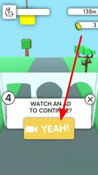 在游戏里要是碰到能继续的提示,就可以挑选对应的选项,看完相关内容后就能接着当前的跑酷进程,努力取得更出色的成绩。