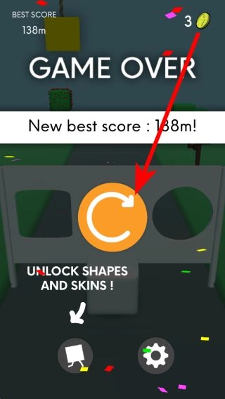 当游戏失败并显示结束界面时,点击重新开始按钮即可再次开启跑酷挑战,通过不断尝试来突破自己的最佳距离记录。