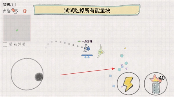 吃掉所有能量块,获取资源以提升飞机能力。