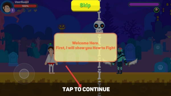 游戏启动后,屏幕会呈现欢迎界面与操作指引,点击“TAP TO CONTINUE”按钮,就能进入游戏,开启你的冒险旅程。