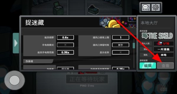 进入本地大厅的捉迷藏模式设置界面,你可以调整船员视野、手电筒范围等参数,也能对房间设置进行编辑或查看,一切准备就绪后,就可以等待其他玩家加入了。
