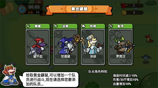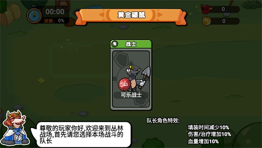 进入游戏后,第一步要挑选你的鼹鼠战士,每个战士都具备独一无二的技能效果。