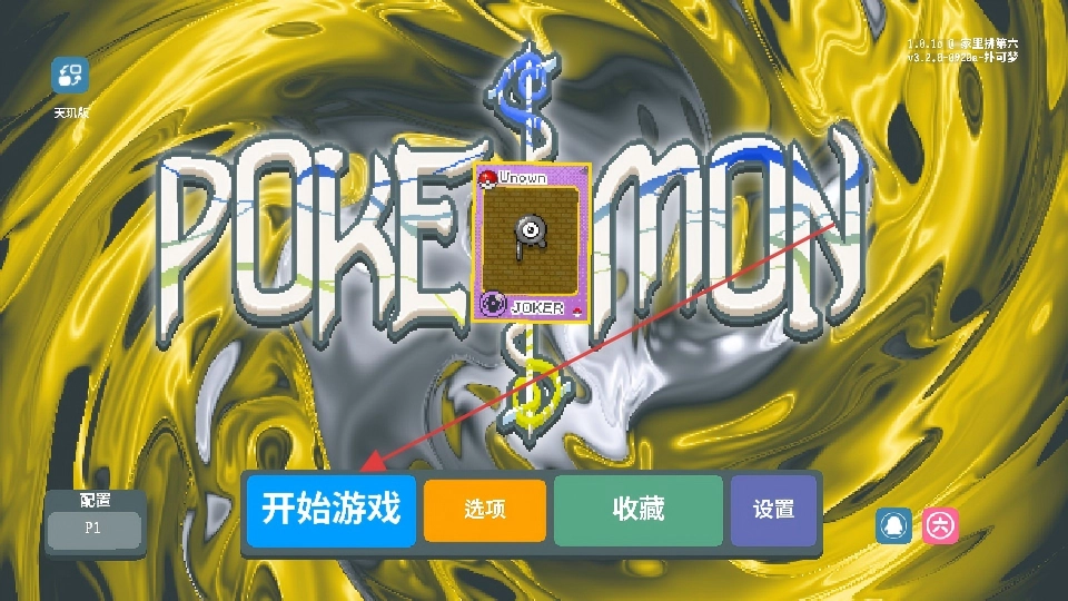 进入游戏,看到POKEMON主题界面后,点击开始游戏按钮,即可进入扑克对局环节。