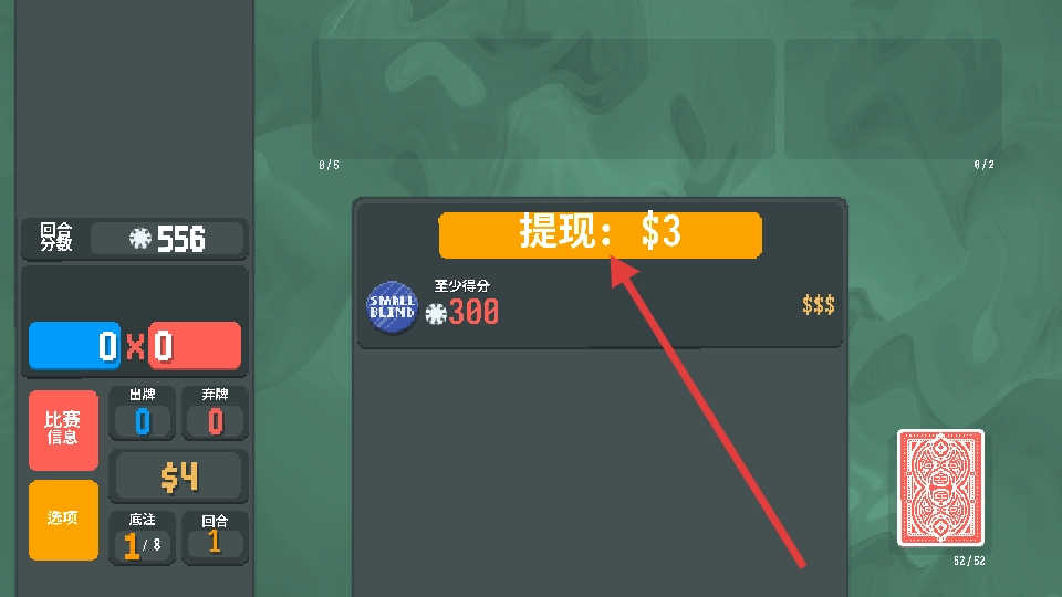 新手入门步骤:启动游戏后跟着新手引导走完操作流程,第一步选小盲注开启第一局对战,接着依据手牌特点选择要出的牌,在限定回合里拿到目标分数就能解锁后续玩法,轻松掌握基础规则。