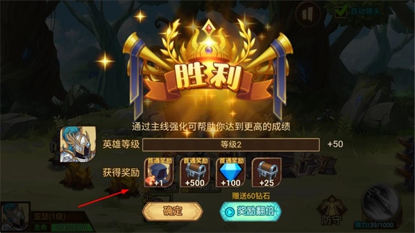 战斗获胜后,玩家可获得英雄等级提升、钻石、金币等奖励,这些奖励能用于强化英雄与部队,进而挑战难度更高的关卡。