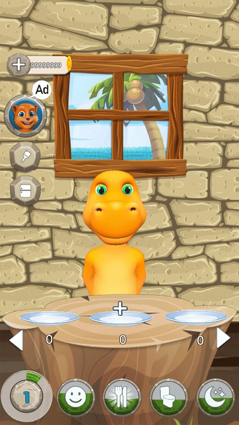 进入游戏后呈现的是互动界面,你可以点击小恐龙和它嬉戏,也能通过说话让它模仿重复。