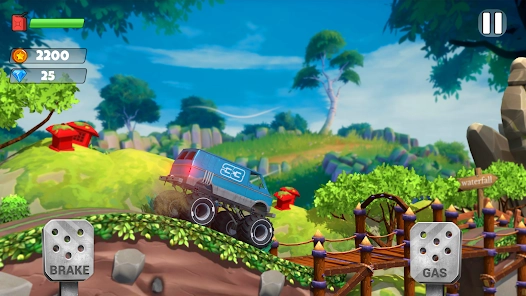 游戏中设有水坑、陷阱、暴雪等多种天气与地形类挑战,顺利通过所有关卡即可获取丰厚奖励。比如需要在暴雪天气里维持车辆平衡,又或者驾车穿越泥泞的陷阱区域。