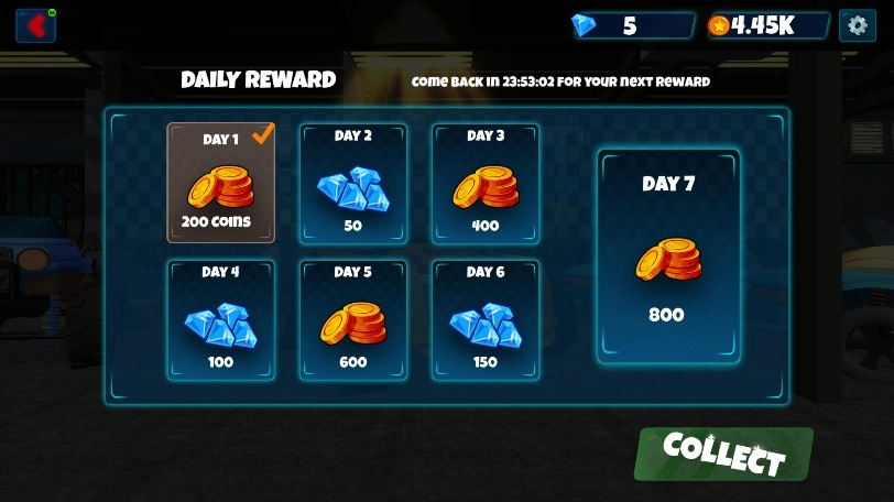 提供不同任务(如限时运输、极限攀爬),考验策略与操作。完成特定任务可获得大量金币,用于购买新赛车或升级零件。