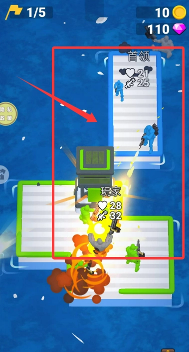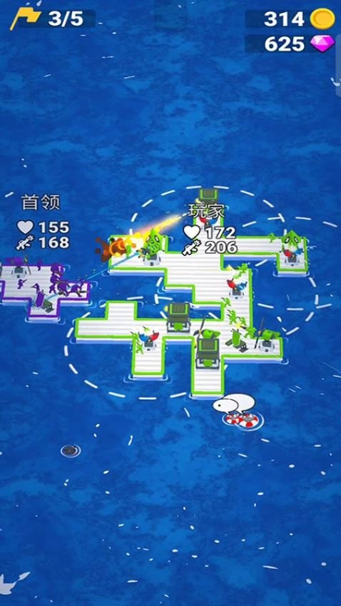 游戏开始后,点击水面上漂浮的救生圈来收集士兵,每成功解救一名人员,你的海上军团规模就会相应扩大。