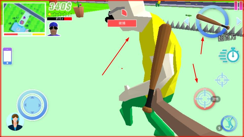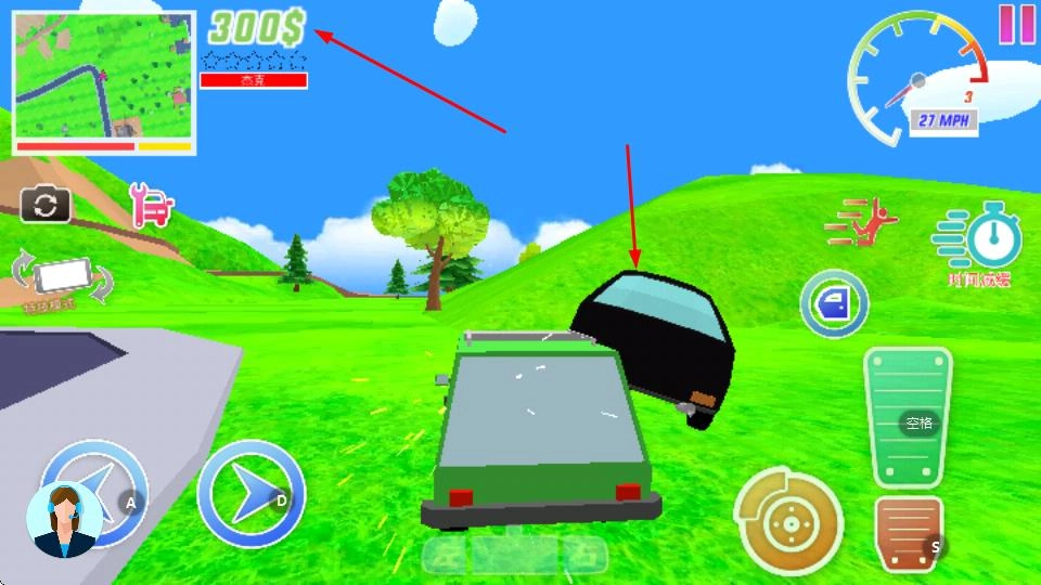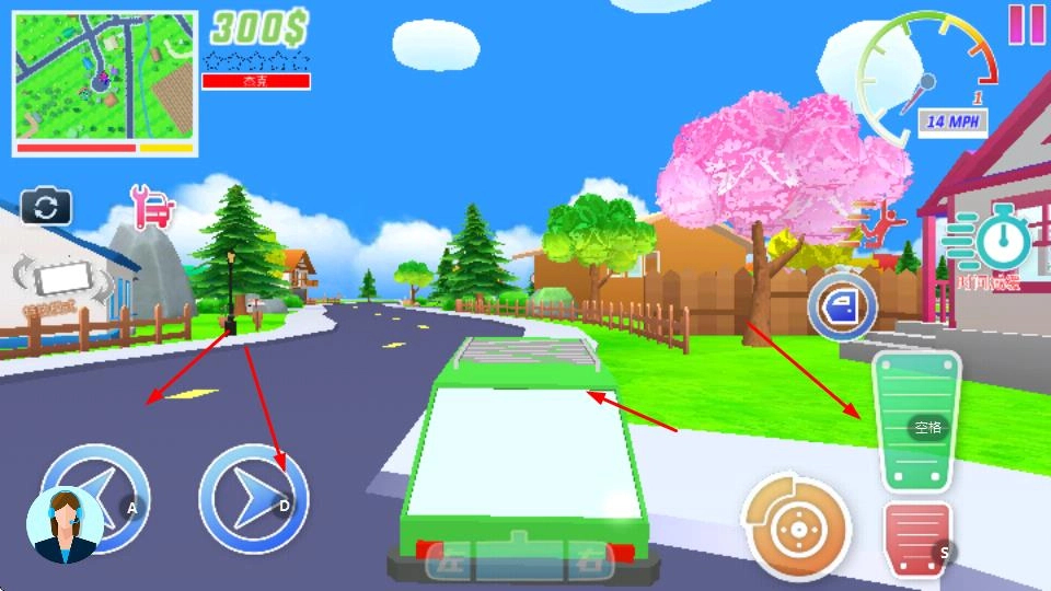 你将操控角色在草地、街道等不同场景中移动,通过左侧的虚拟摇杆来调整行进方向,以此探索整个地图。在游戏初始阶段,你可以获取到300美元以及其他相关资源。