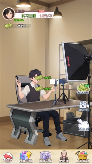 在直播功能里,点击屏幕就能获取收益,每次点击屏幕都能赚到数额不等的钱。