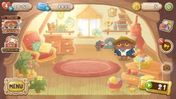 可以用通关奖励的金币和出售画作的收入,帮助尼果修缮破旧的房间,逐步还原每个房间的原貌,在这个过程中慢慢体会尼果与铲屎官之间的温馨互动。