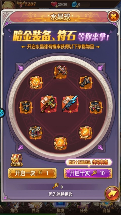 钻石推荐玩家先抽一次水晶球十连,能拿到不少好用的装备,前期打怪效率会大幅提升。技能方面,技能树左右两侧各有九个技能,前期优先点出生命祝福和魔力灌注——一个回血一个回蓝,堪称“永动机组合”;左边技能侧重攻击,右边偏向防御,建议根据技能特性灵活搭配。属性点的分配上,推荐攻击和魔力平均点,再把防御和生命各加2-3点来堆防御,避免被BOSS直接秒杀。