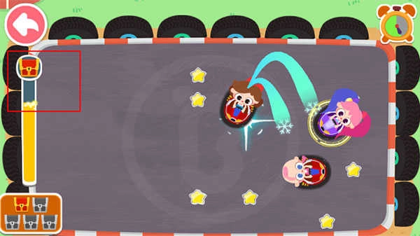 5、撞击其它宝宝的碰碰车会掉落星星,当捡取的星星条满了之后可以获得宝箱。