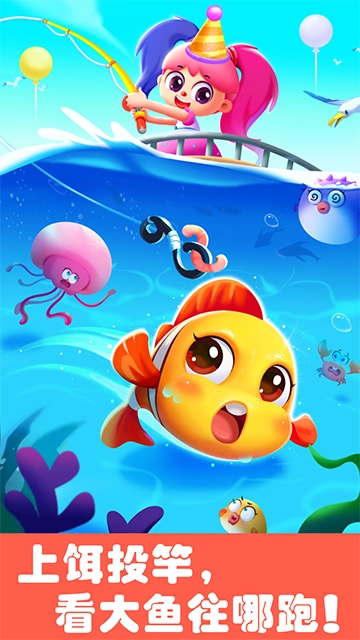 想要钓到大鱼,钓竿和饵料是必不可少的!选好这些东西后,就可以开始给鱼钩上饵、把鱼竿投出去啦。宝贝要耐心等待,仔细观察水面的变化,这样鱼儿肯定会被吸引过来咬钩的!(这可是在培养你的耐力哦)