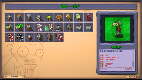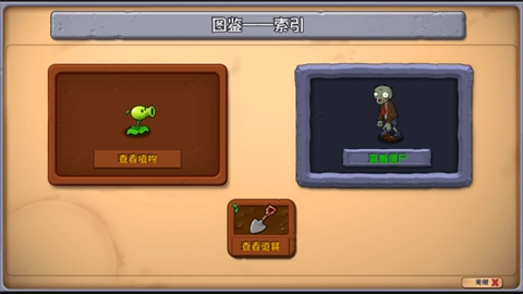 点击“图鉴”可以查看植物和僵尸的图鉴。
