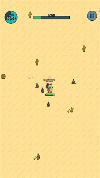采用像素画风来呈现被污染的地球场景,无论是荒芜的地表还是突变生物的外观,都运用简洁的像素元素进行展现。这样的设计既贴合末日背景的氛围,又能保持射击割草玩法所需的视觉清爽感,使得整体画面风格统一且协调。