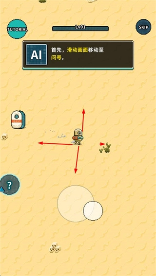 根据提示滑动屏幕,操控角色移动至问号所在处,开启探索之旅。