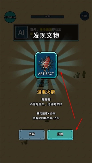 在探索的过程里,你会发现一些文物,并且可以选择获取它们。这些文物能够为你带来属性方面的加成,例如混混火箭就可以提升15%的移动速度以及15%的所有武器暴击率。