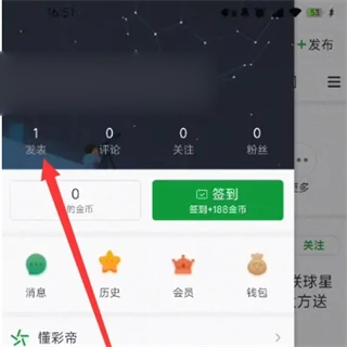 找到自己发表选项。