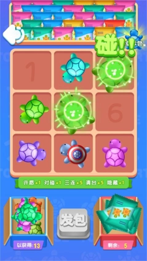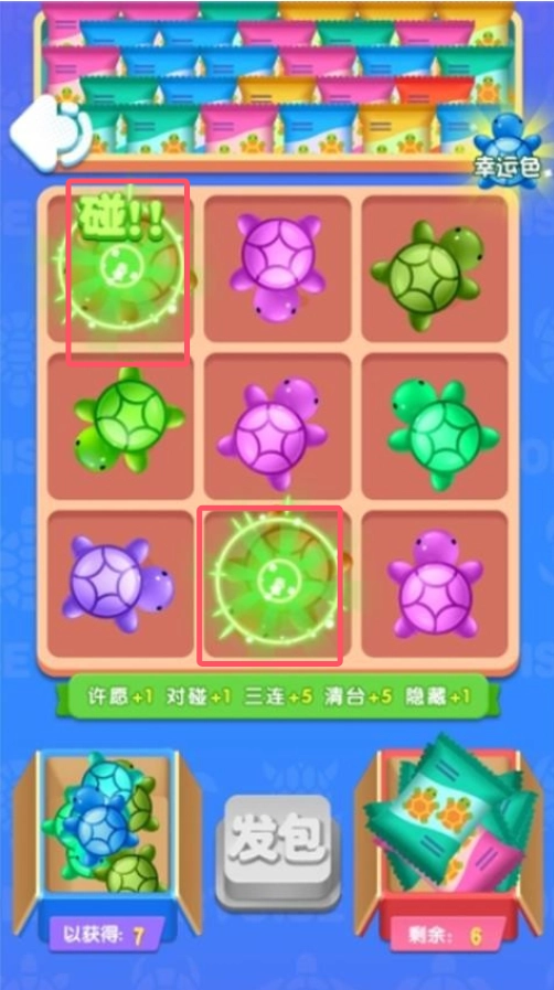 相同的乌龟还能再抽一次,这一设定增加了游戏的趣味性,玩家可以通过对对碰消除乌龟来获取奖励。