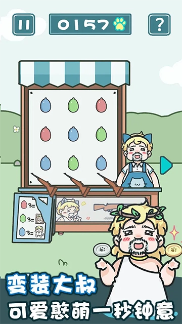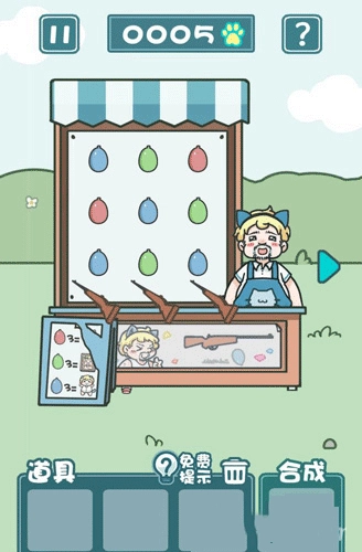 走到右边,从树上折下一根树枝,再回到大叔面前。用这根树枝清理柜子底下,就能得到一支蜡笔。拿蜡笔随便把一个气球涂成红色,然后点击屏幕上的三个红色气球,就能通过这一关了。