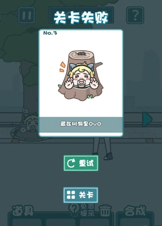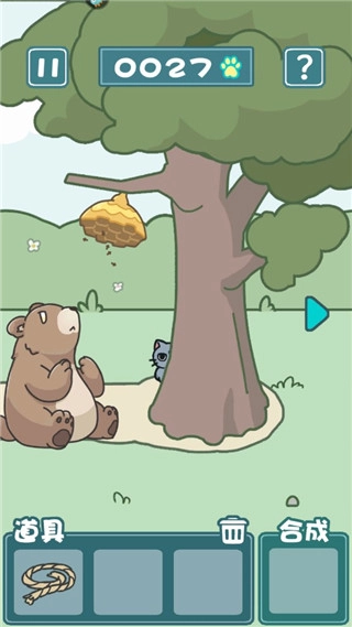 首先从最右侧的椅子上取到一串气球,然后回到左边点击树洞,即便出现任务失败的提示也无需在意。接下来点击大叔头顶的独角仙,把独角仙交给中间的小男孩,就能得到捕虫网。将捕虫网和气球一起交给主角后,会出现一个向上的箭头,点击这个箭头,再点击捕虫网里的猫咪,就能顺利通关了。