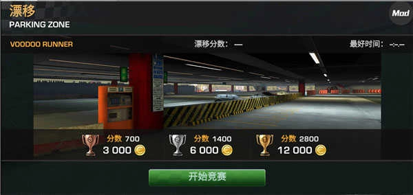 这里小编选择的漂移模式,进入比赛后会有不同类型的赛事,而不同赛事有着各自不同的规则与奖励。