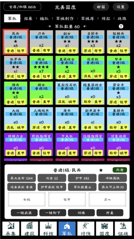 完美国度把模拟经营、放置策略与战争策略巧妙融合,每一个决策都关乎国家的发展走向,这不仅丰富了游戏的内涵,还提升了其耐玩度,使你的每一步操作都极具挑战性。