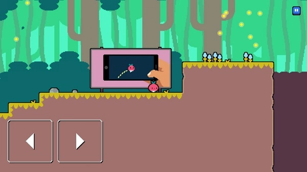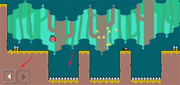 左下角的两个按键可以控制角色左右移动和快速跳跃,但要留意前方的陷阱,千万别掉下去。