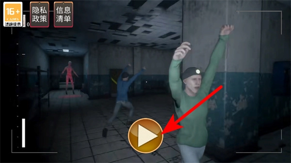 进入游戏界面后,点击播放按钮开启逃生关卡,这是进入游戏的关键操作,准确点击才能进入惊悚逃生场景。