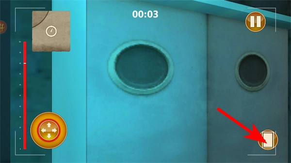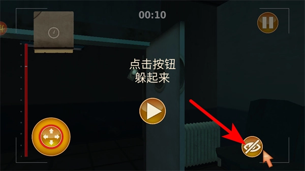 跟着红色箭头的指示,点击躲藏按钮就能进入隐蔽区域,以此避开危险目标的追踪,保证角色暂时处于安全的状态。
