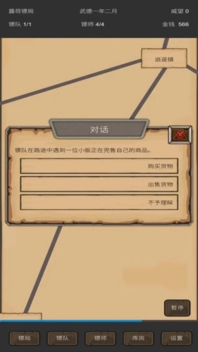 游戏中还会随机出现不少突发事件,面对这些随机事件,玩家需要合理应对,及时做出各种决策,升级自己的镖局,并且与队友结盟共同运送货物。