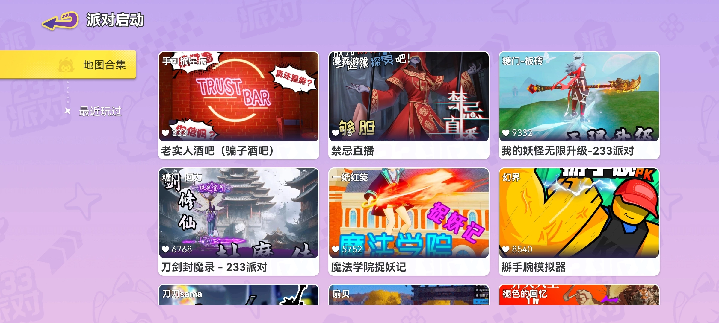 在233派对游戏里,玩家能够前往其他玩家创作的地图游玩。
