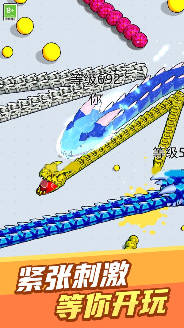 成长机制多样:运用渐进式成长系统,玩家操控小蛇持续吞食地图上的资源,让体型逐渐变长以提升存在感,整个过程既紧张刺激又让人沉浸其中,十分带感。