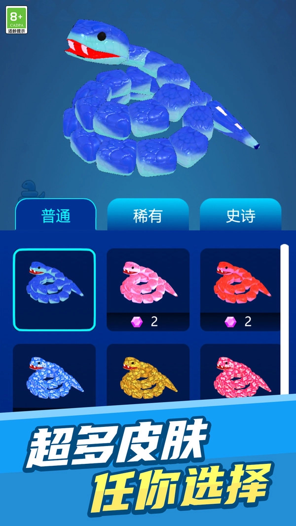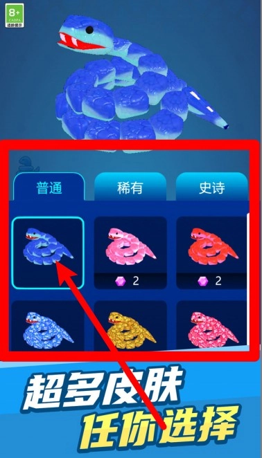 多种皮肤可供选择:从普通到史诗品质,小蛇的造型十分丰富,不同颜色和款式可以随意切换,打造专属于你的外观风格,更能彰显个性魅力。