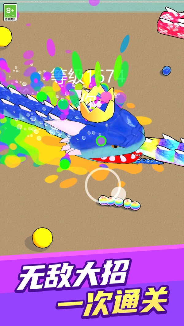 自由换装外观:打造多款小蛇造型与独特色皮肤,玩家可根据喜好切换外观风格,在混战中展现专属个性,兼顾颜值与辨识度。