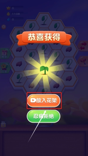 选择“放入花架”或“忍痛拒绝”来决定种子去向。
